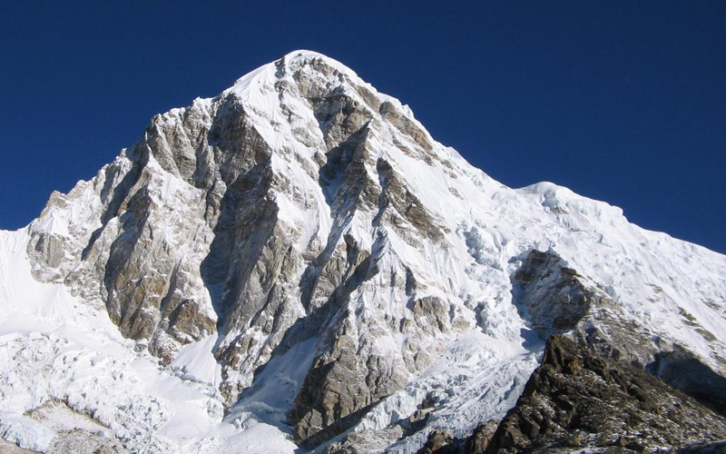 Mt. Pumori is one of the mountain in Mahalanghur section of Himalaya, which is on the border of Nepal-Tibet at the 7,161 m above sea level . It has first climbed in 1962, it is situated to the opposite of Mt. Everest in Khumbu region it very peaked mountain it is one of the most techinical mountain having steep surface and a bit challenging for expedition.The easiest climbing route is graded class 3 . There is high rate of risk of avalanches. The first expedition group of this mountain is German Swiss team they had climbed this mountain in year 1962.Pumori expedition base camp is just below the Kallapathar near the small lake at 5300 m. form four hours of walking we will reach at camp1 at 5700 m. At the distance of 480 m there is camp II (6200 m) on a narrow ridge and form there at the 450 m. a head we will be at the height of 6480 m which is Camp Iii And then Passing through the crevasses and climbing on cliff the team will touch the summit .
